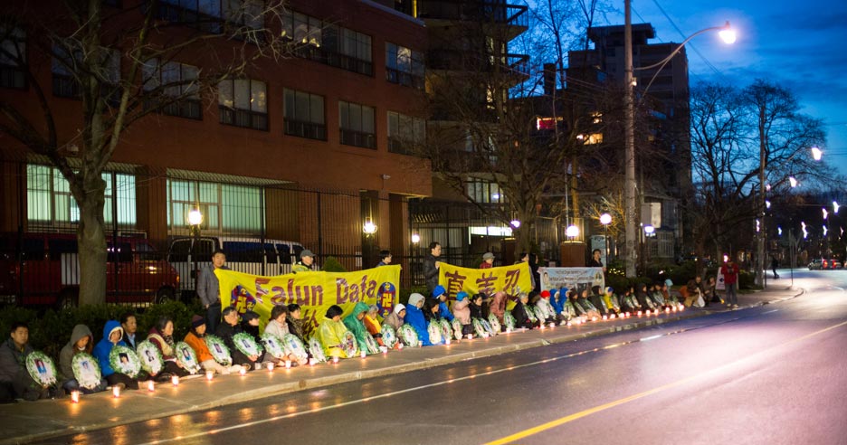 多伦多法轮功学员在中领馆前烛光悼念,呼唤良知