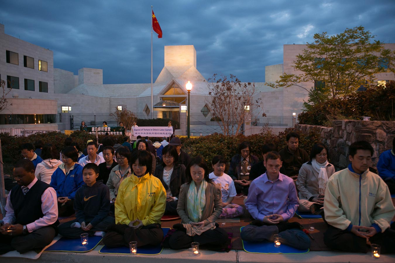 ![]() 美国大华府地区部份法轮功学员在中共驻美国大使馆前,点燃烛光,纪念“四二五”和平上访十四周年 |