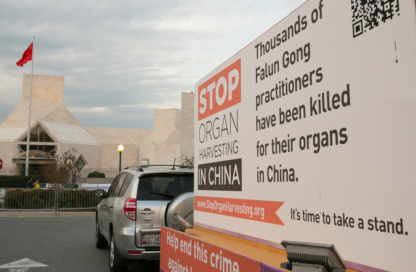 ![]() 揭露中共活摘法轮功学员器官的真相展板车 |