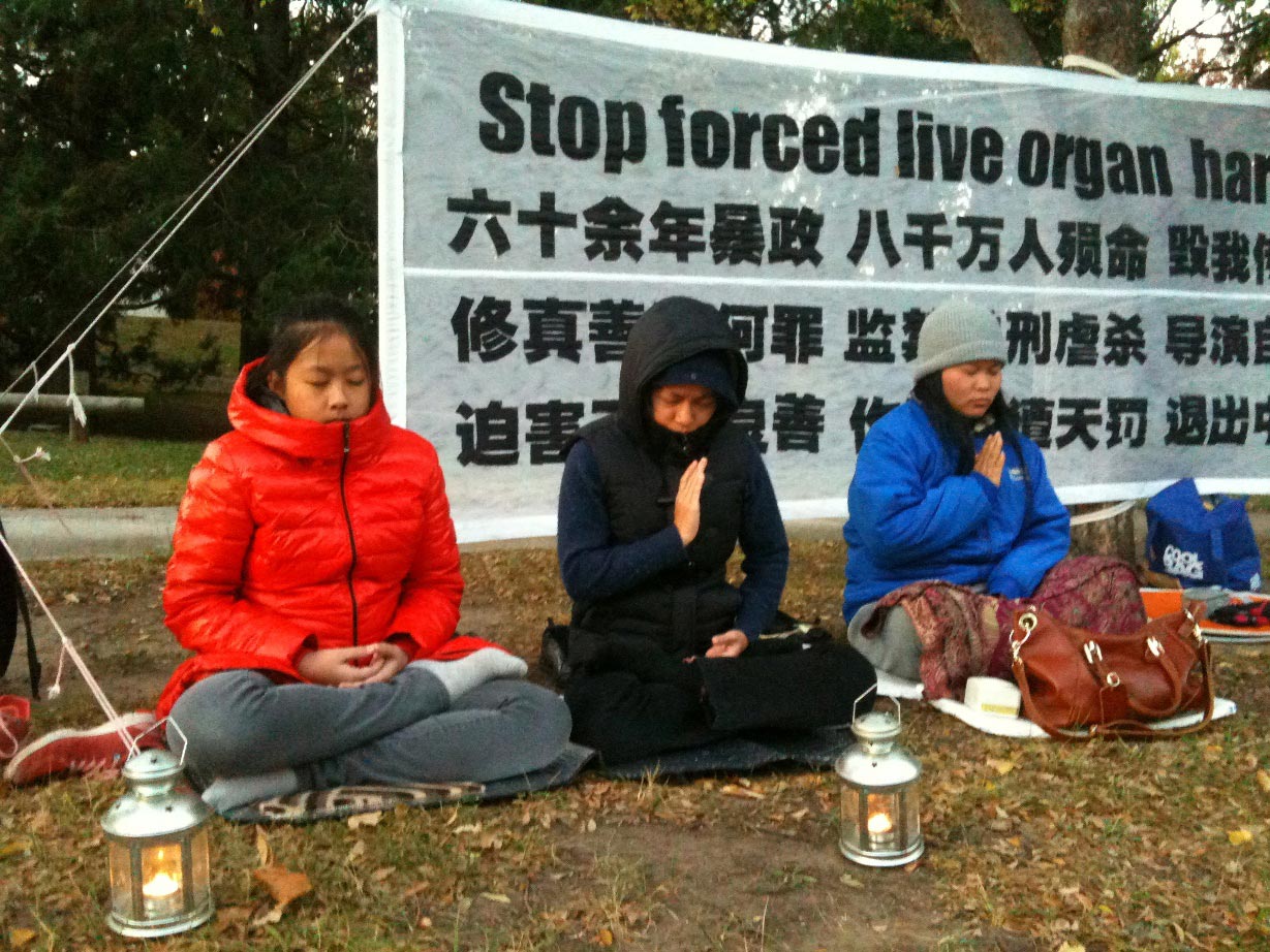 法轮功学员陈女士在集会发言中宣读了“清算江泽民迫害法轮大法国际组织”公告《现任当权者:立即逮捕法办罗干、曾庆红、周永康、李嵐清四大元凶》。她在发言中表示,这场持续长达十四年的对法轮功的政治迫害,“是整个人类意识形态领域里前所未有的残酷的精神思想专制迫害;是无视人类最基本生存权利的迫害;是摧毁人类道德、法治观念、法律秩序的迫害;是摧毁人类正信、道义、良知的迫害!这场灾难不仅仅是中国和中华民族的灾难,也是祸及了全世界人民的灾难。”烛光守夜活动正是下班高峰时间,许多过往车辆放慢速度经过活动现场,不少司机鸣笛支持。