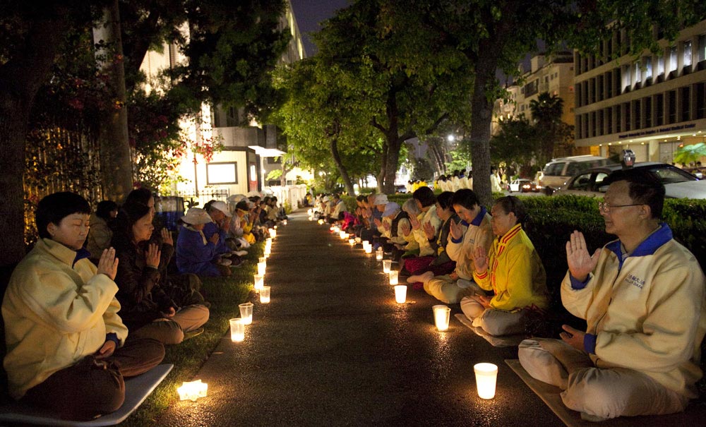 ![]() 二零一三年四月二十五日,洛杉矶法轮功学员在中领馆前集会,用烛光悼念在中共持续十四年的残酷迫害中失去生命的法轮功学员。 |