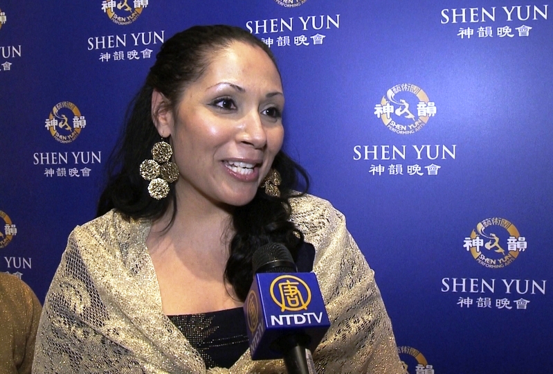 “神韵所有的一切都很精彩。她们在舞台上通过天幕和其他元素的结合,将中国古老的文化,在纽约这样一个现代化的大都市上演出来。这非常的好。”她继续说:“当今社会混乱,每个人都生活在紧张和压力之中。神韵演出仿佛把我们带入了一个世外桃源。我感觉很快乐。我现在很期待下半场的演出。而且我也迫不及待的想要让我的朋友都来看神韵了。”