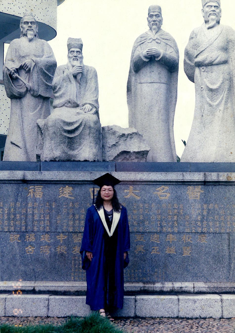 我的母亲中年后才经营中药行,我有空时会帮忙抓药,发现自己对中药很感兴趣;一九八九年,有个机会让我前往大陆学习中医学,虽然我当时已经三十七岁了,我毅然踏上就读之旅,前后十年漫长的时光,来回两地,于一九九九年研究生毕业。