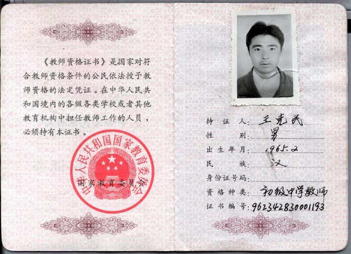 | 王克民生前照片 | 教师证书 | 王克民的温馨一家 |
