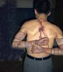 ![]() 酷刑演示:上绳 | ![]() 酷刑演示:毒打 |