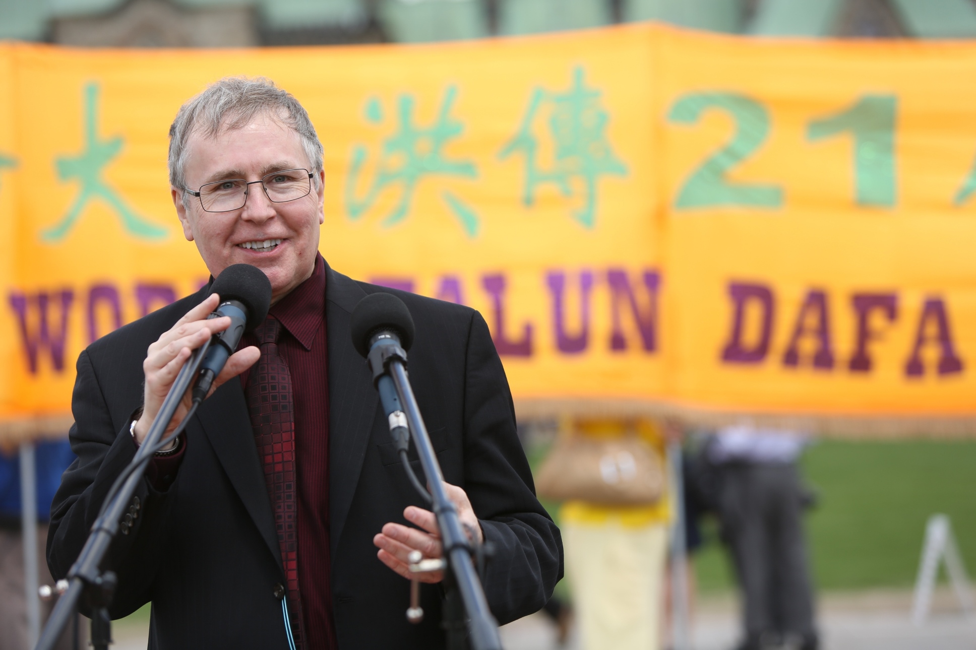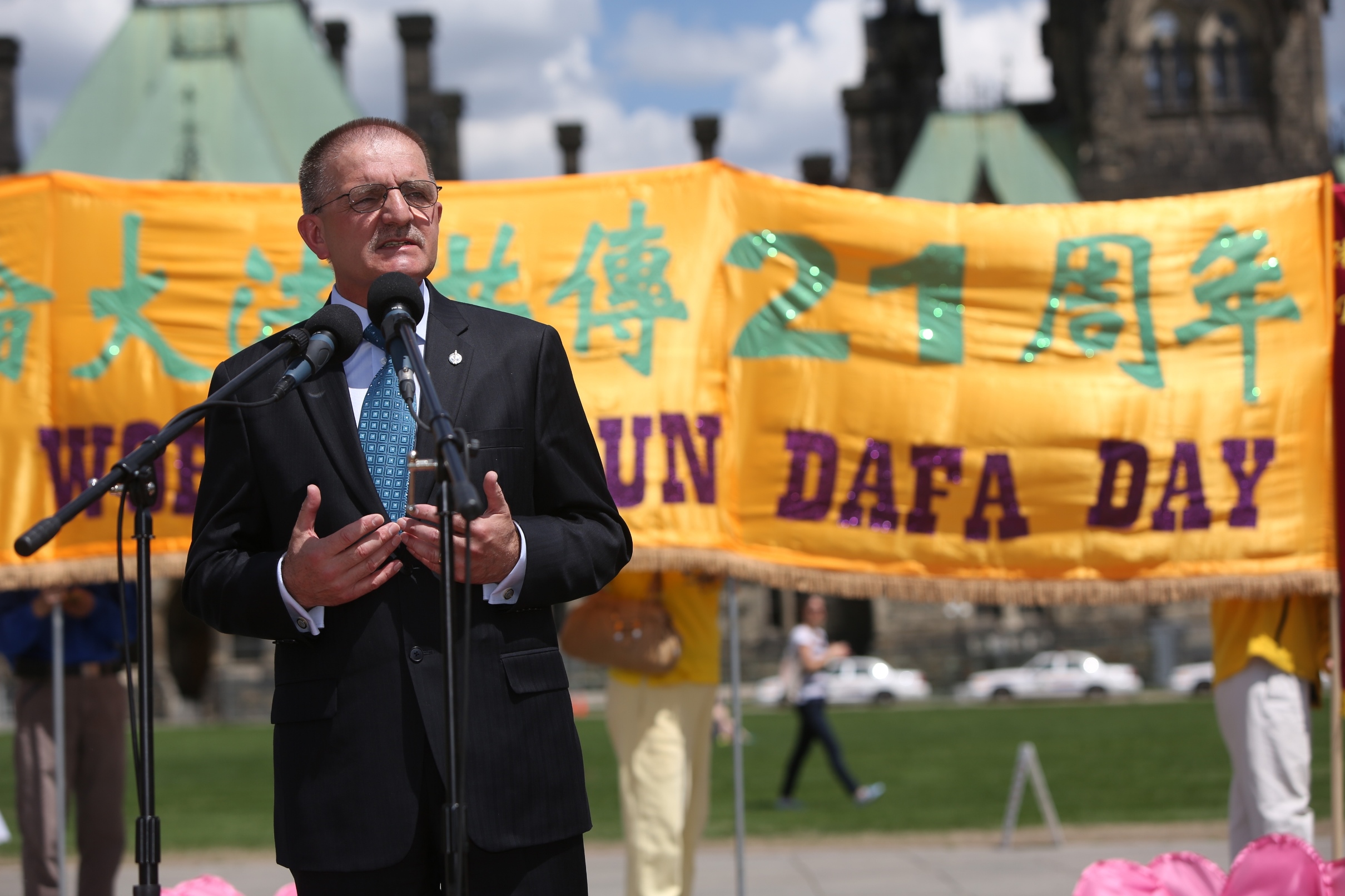 他在当天的演讲中说:“十三年前,就是二零零零年,当我第一次当选时,所有议员候选人都参加了辩论,所有的候选人被问及他们如何看待发生在中国的迫害时,各党的候选人都说,‘我们支持法轮功修炼者的权利,法轮大法学员修炼的是和平的,有益社会、有益精神的功法,不应被迫害。’”