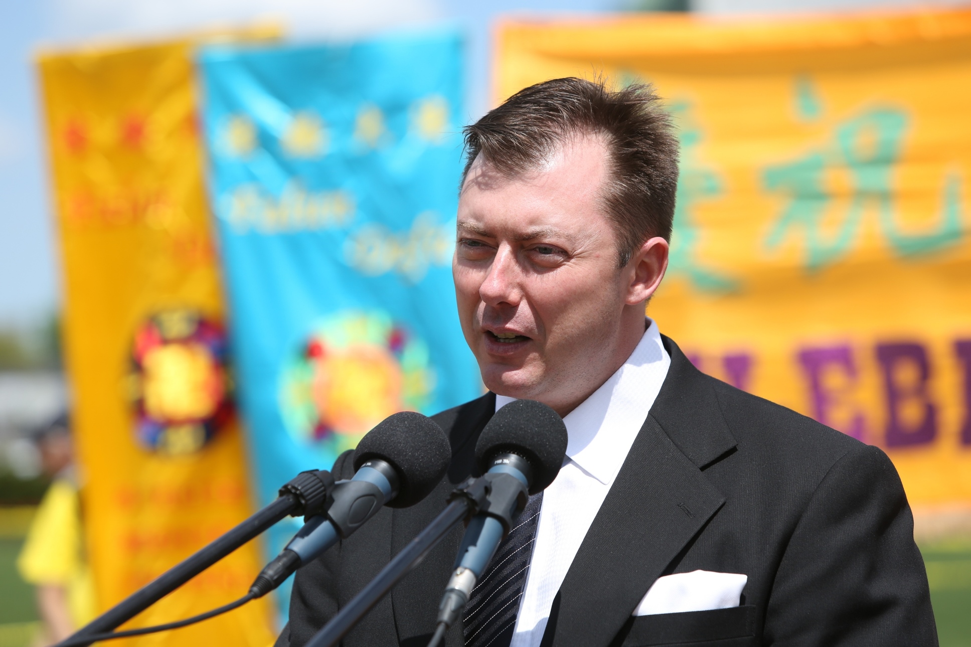 他在演讲中代表官方反对党的领袖托马斯•穆尔凯(Thomas Mulcair)表示,我很骄傲地站在这里告诉你,加拿大官方反对党是支持法轮功的。他祝福加拿大的法轮功修炼者“在这个自己选择居住的国家里,拥有自由、祥和的幸福生活”。