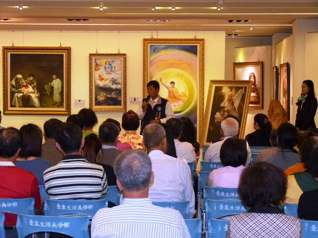 ![]() 台东县议员田石雄感谢主办单位把真善忍美展带来台东 |