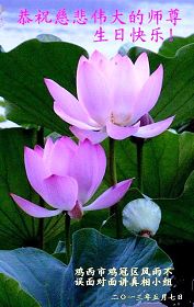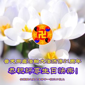 黑龙江省大庆教育系统大法弟子恭祝师尊生日快乐!吉林大学通信学院学法小组大法弟子恭祝师父传法二十一周年!北京朝阳区高校大法弟子敬祝师尊华诞!广东省江门市恩平市教育系统大法弟子恭祝师父生日快乐!庆祝世界法轮大法日!吉林大学大法弟子恭祝师父生日快乐!庆贺世界法轮大法日!贺法轮大法洪传二十一周年!我们会形成整体,圆满完成大法弟子的责任,讲清真相救度众生。