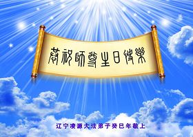 辽宁省沈阳大法弟子恭贺法轮大法洪传二十一周年!辽宁省沈阳市康平县大法弟子祝师父生日快乐!辽宁省沈阳大法弟子祝师尊六十二岁华诞!辽宁省沈阳市和平区大法弟子恭祝慈悲伟大的师尊生日快乐!辽宁省沈阳大法弟子祝师尊生日快乐!普天同庆世界法轮大法日!拜谢师恩大穹危难中,主佛发一念,随我下世正法救众生,弟子听命如得令,助师正法世间行。