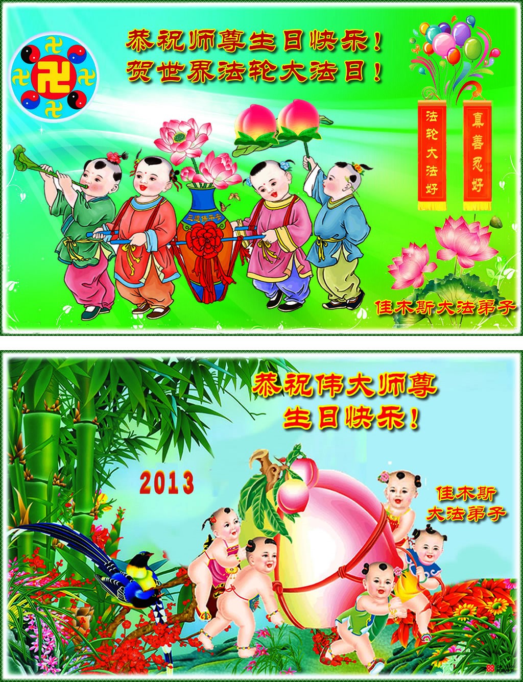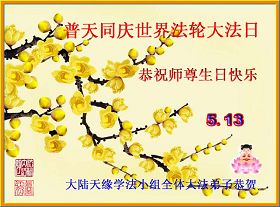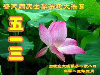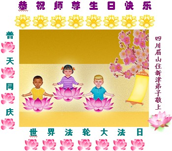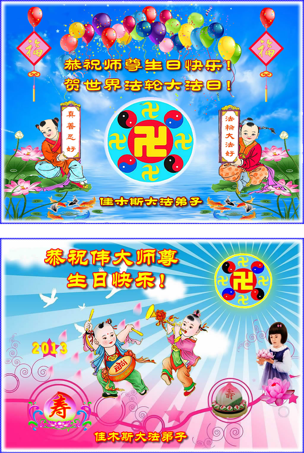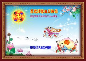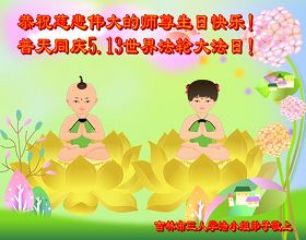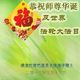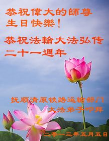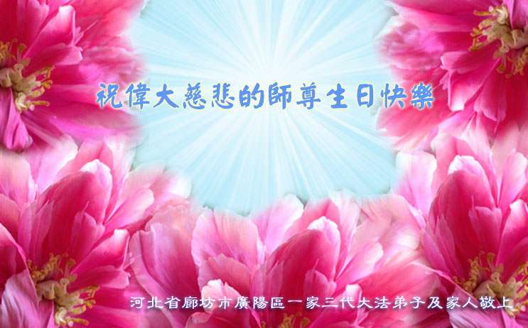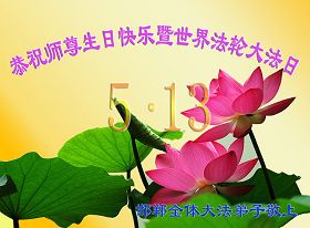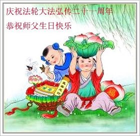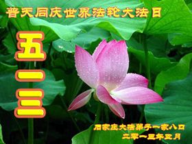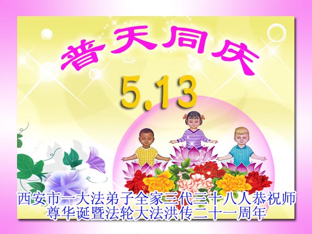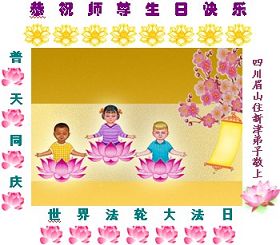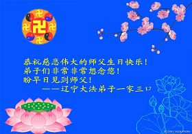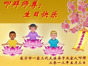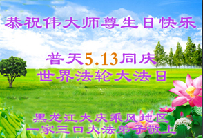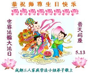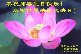 在法轮大法日和伟大师尊生日即将到来之际,我们祖孙三代大法弟子及明白真相的亲人庆祝大法日,并恭祝师尊生日快乐!