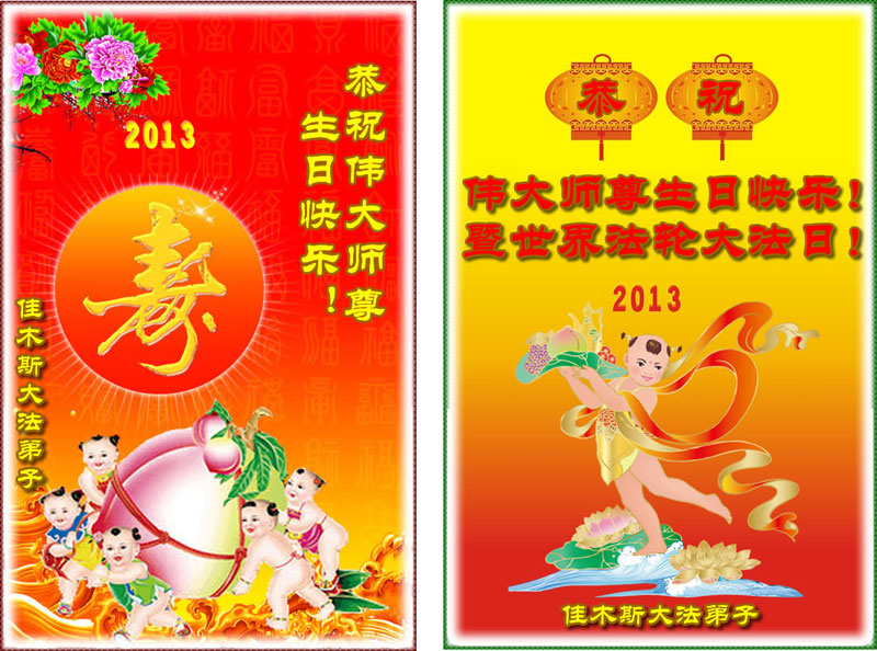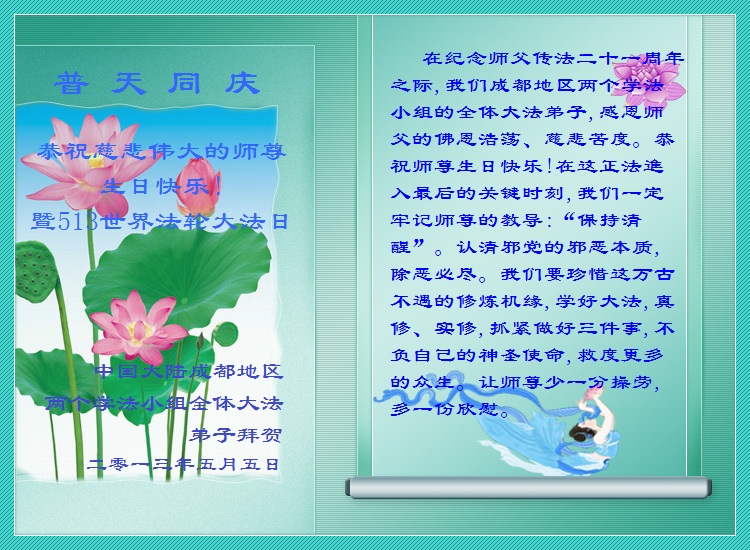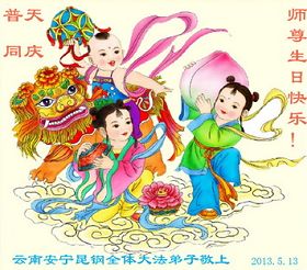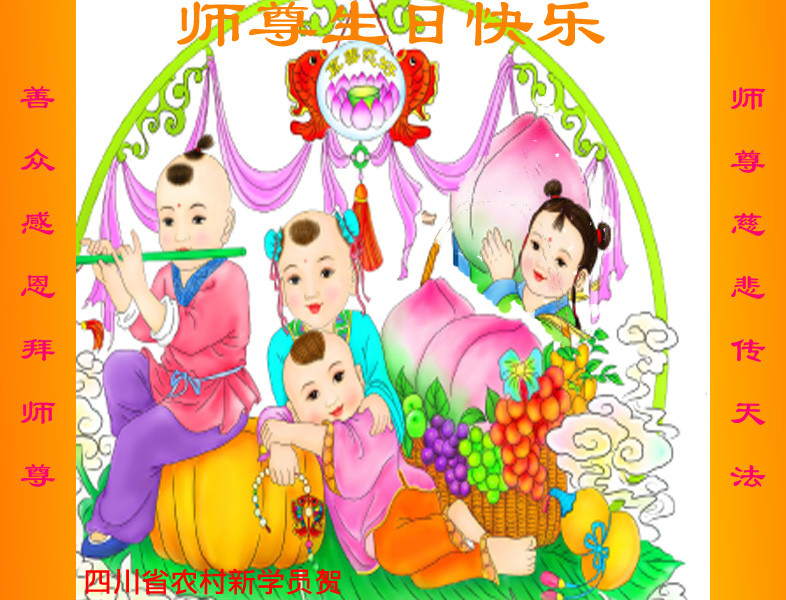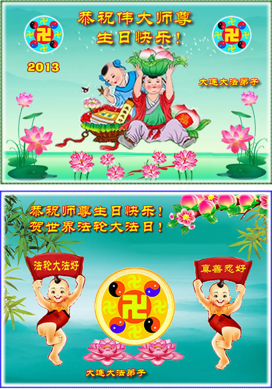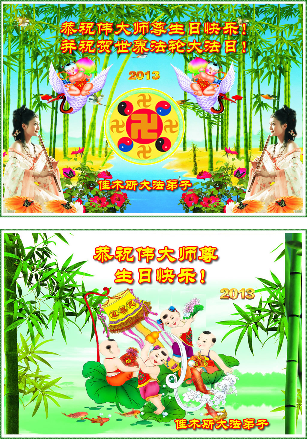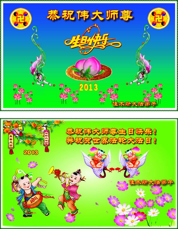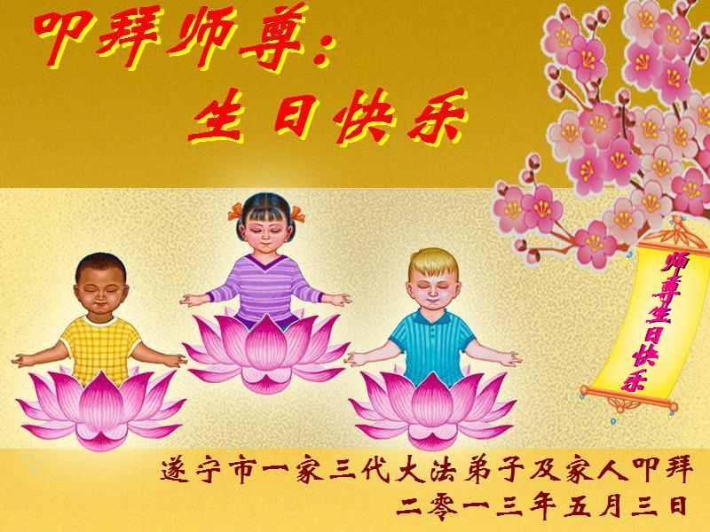 在法轮大法日和伟大师尊生日即将到来之际,我们祖孙三代大法弟子及明白真相的亲人庆祝大法日,并恭祝师尊生日快乐!
