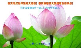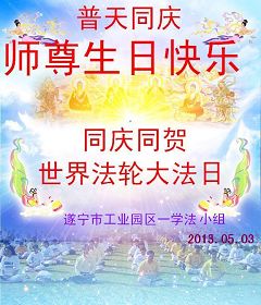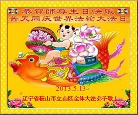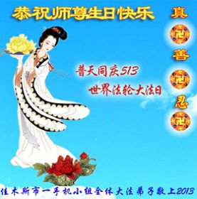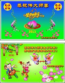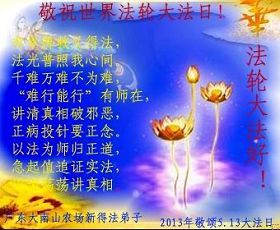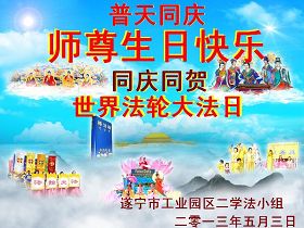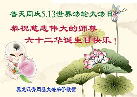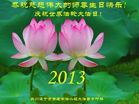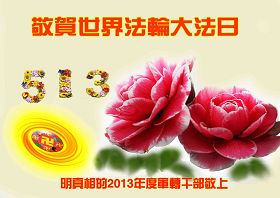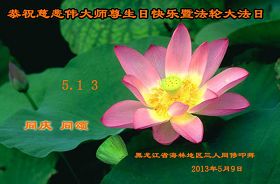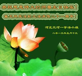 我们是明真相“三退”后的2013年度军转干部,即将从部队走向社会,但不管到什么单位,但不管到什么地方,都知道了按照真善忍的标准去做一个好人,敢于替法轮功说句公道话,宣传法轮大法的神奇与美好,善待大法学员,顺天意而行。借普天同庆世界法轮大法日之际,向李大师致以真诚的谢意,恭祝李大师生日快乐!
