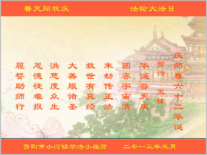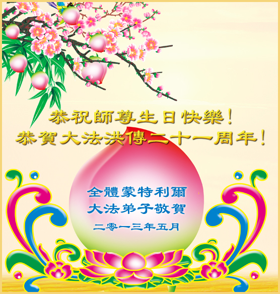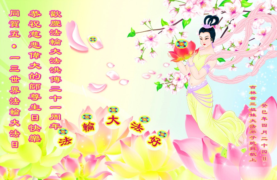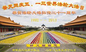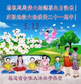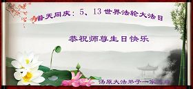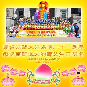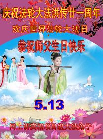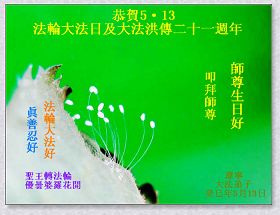 庆祝世界法轮大法日及法轮大法洪传世界二十一年!