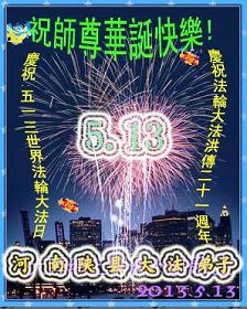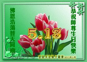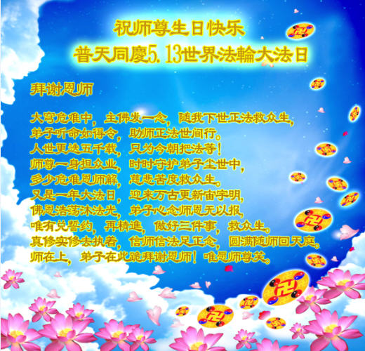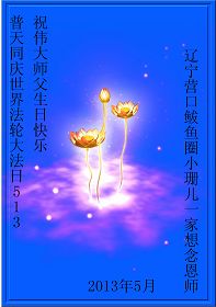恭祝普天同庆的“5.13”世界法轮大法日!恭贺法轮大法洪传世界二十一周年!叩谢大法师父!师父辛苦了!