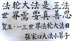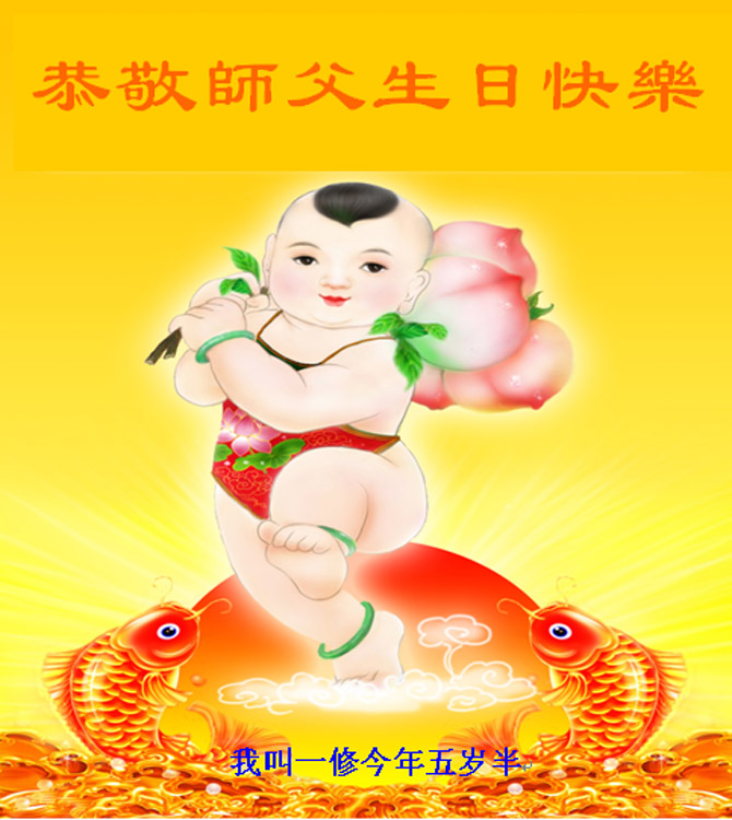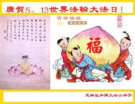 河北三河一位老年大法弟子及明真相的孙子恭祝师尊生日快乐!庆祝5.13世界法轮大法日!叩谢师尊救度之恩。