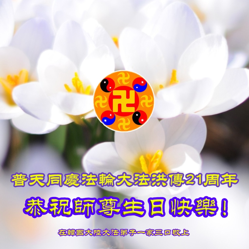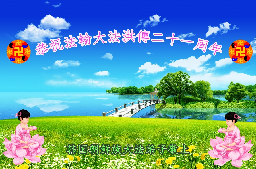 在5.13、师尊华诞暨世界法轮大法日来临之际,在韩国的朝鲜族大法弟子祝慈悲伟大的师尊圣诞快乐!祝法轮大法洪传二十一周年!