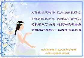 后来,我又在大课间播放《普度》音乐,将音量开到最大。天籁般的《普度》乐曲悠扬悦耳,回荡在教学楼的上空,我和学生们都沉浸在这美妙的天音之中,就感觉到弥漫在教室内外空间中的那些败坏物质因素烟消云散,顿时神清气爽,这让我不能不感叹大法音乐的神奇力量。