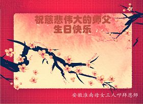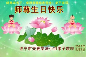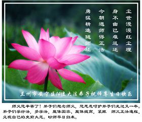 在这物欲横流的社会里,是法轮大法净化了我们的心灵。才能做到拒收病患送的红包。在现今的环境,有的病人看到我拒收他们红包,都觉的不理解,觉的不可思议,别人不给还不高兴呢。我告诉他们,我是学法轮大法的。法轮大法是教人做好人提升人道德的高德大法。明白真相的同事说,也就是法轮大法才能使你变成这样的,在利益面前守住良知。弟子携全家叩谢师尊,祝师尊生日快乐!