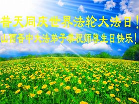 内蒙古锡林浩特、太仆寺旗、白旗、正蓝旗、多伦县全体大法弟子和明真相的世人以无比感恩的心恭祝慈悲伟大的师尊生日快乐!恭贺世界法轮大法日暨大法洪传二十一周年!