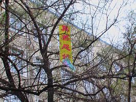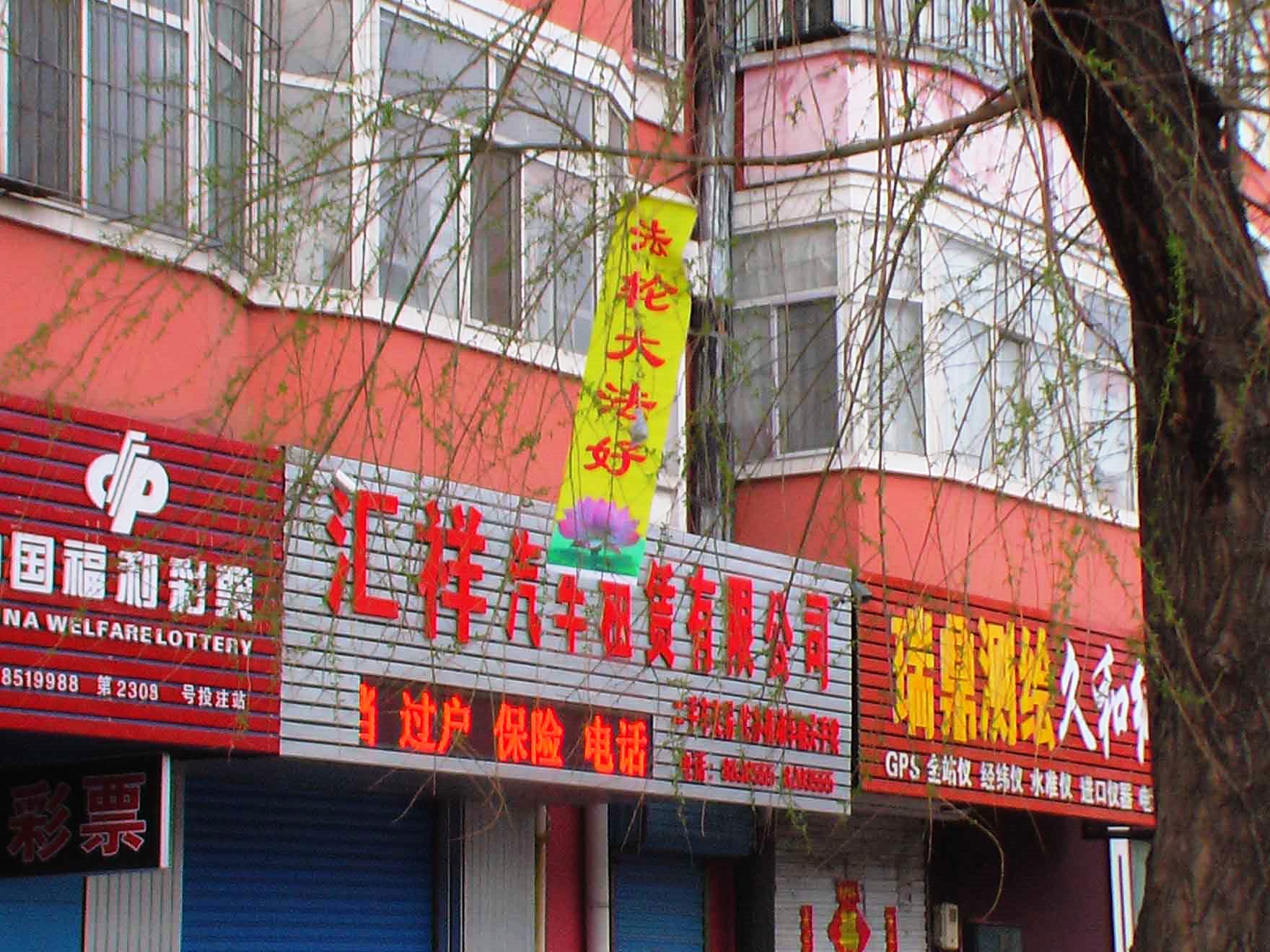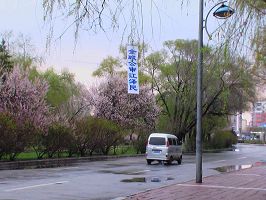 五月十三日世界法轮大法日前东北某市的真相条幅