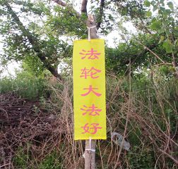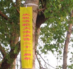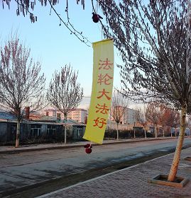 • 庆祝师父传法二十一周年,山东某地出现多种大法真相条幅