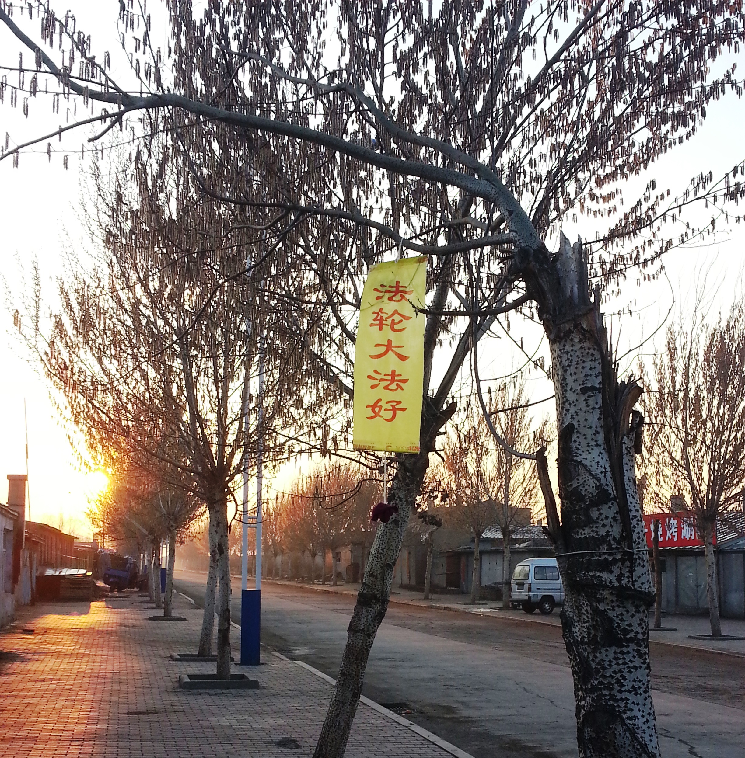 庆祝师父传法二十一周年,山东某地出现多种大法真相条幅