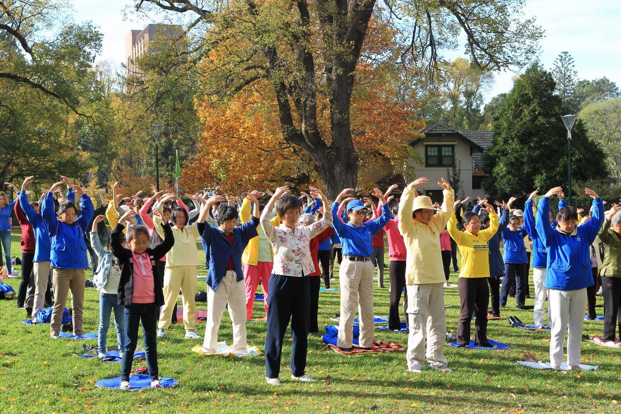 ![]() 法轮功学员在Fitzroy 公园集体晨炼 |
