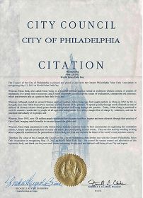 鉴此,籍由此公告,费城市议会与大费城法轮大法协会一起纪念世界法轮大法日,表达本立法机构诚挚的尊敬和赞赏,并感谢你们为改善我们城市和地区人民的身心健康所做的工作。
