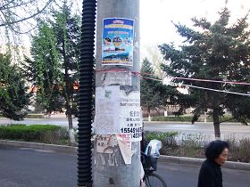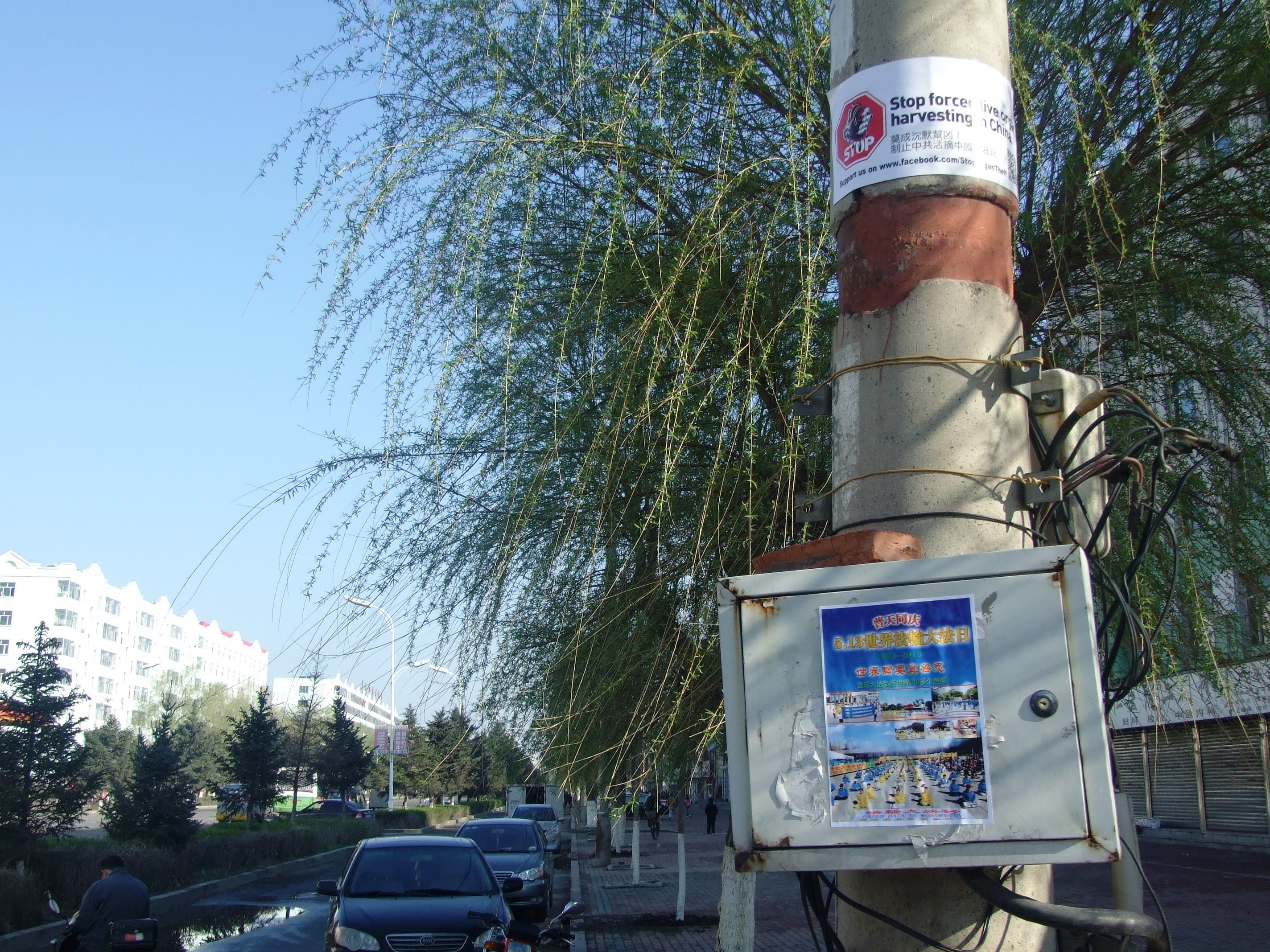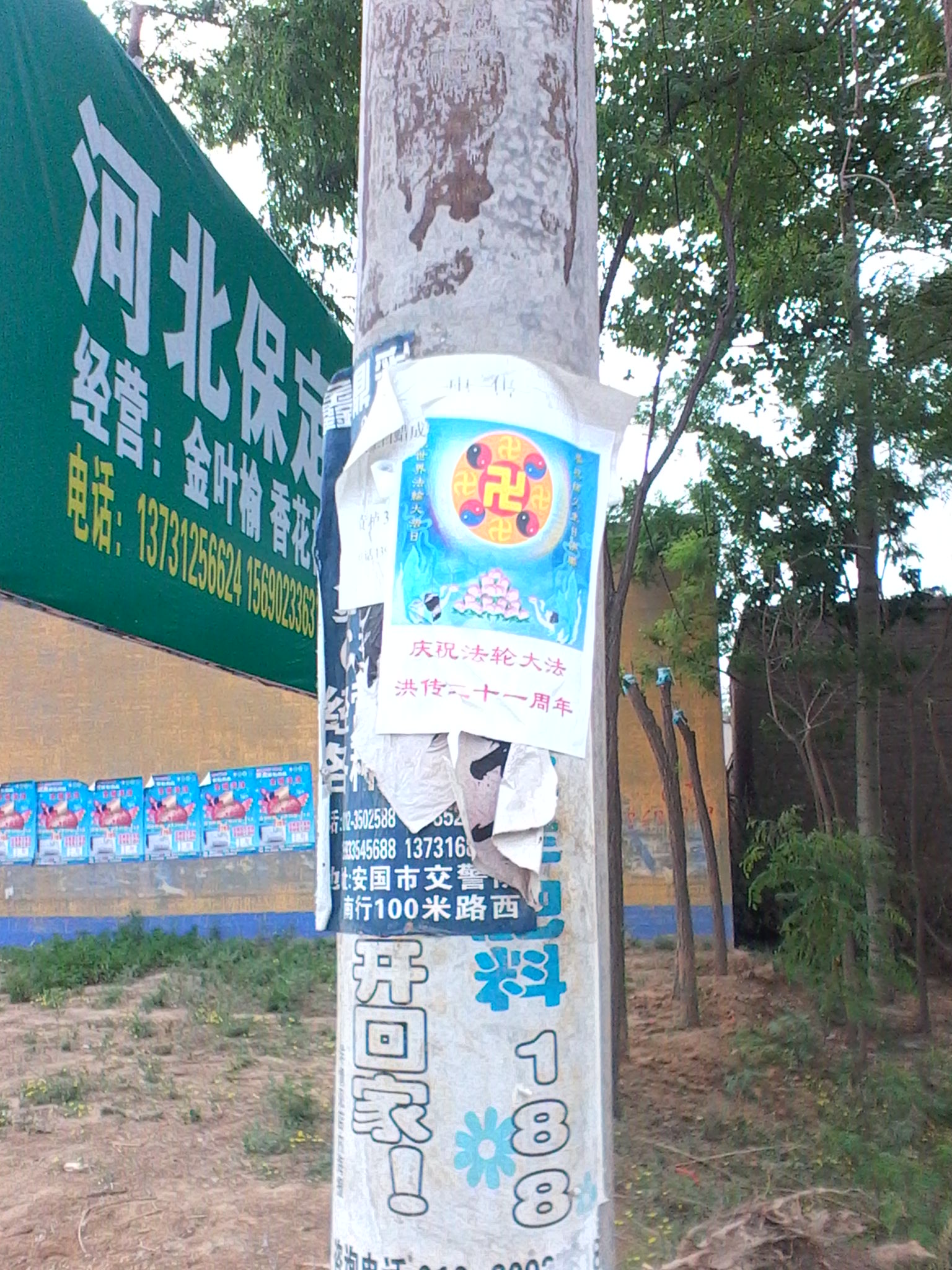 五月十二日晚,河北省某地大法弟子在各村道路旁和公路边张贴的法轮大法真相