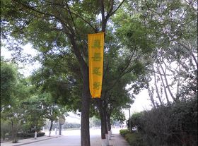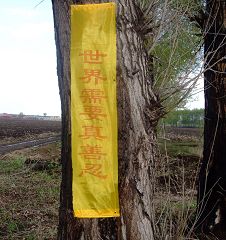 庆祝世界法轮大法日,河北某市在公路上出现真相条幅