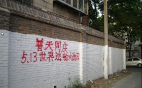 • 五月十二日晚,河北省某地大法弟子在各村道路旁和公路边张贴的法轮大法真相