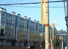 东北某乡镇5.13世界法轮大法日期间出现了恭祝法轮大法日等条幅,还有普天同庆法轮大法洪传世界二十一周年的粘贴。