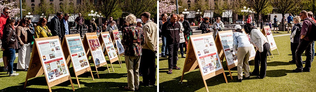 当天的活动吸引很多游人驻足观看并拍摄活动场面。当人们得知中共编造谎言、栽赃陷害法轮功的事实真相时,很是气愤,纷纷谴责中共的残暴行径,主动签名支持反迫害,有的当场就要学功。
