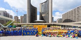 二零一三年五月十三日,加拿大多伦多法轮功学员和民众在多伦多市政广场以歌舞、音乐、朗诵等各种形式庆祝“世界法轮大法日”及大法弘传二十一周年,恭贺伟大师尊华诞,加国政要现场支持。