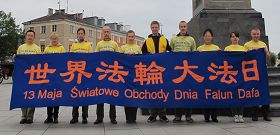 二零一三年五月十二日,波兰部份法轮功学员齐聚华沙,庆祝法轮大法弘传二十一周年暨师尊六十二华诞,喜迎世界法轮大法日。