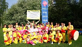 为庆祝法轮大法洪传世界二十一周年,二零一三年五月十一日,十二日俄罗斯法轮功学员在鲍曼公园和植物园举办了庆祝活动。