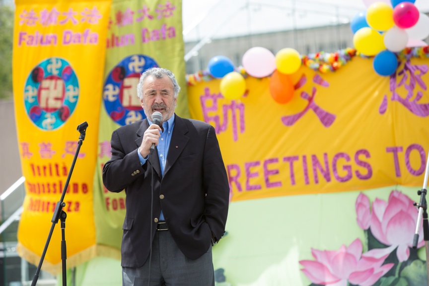 担任二十二年参议员、刚退休不久的迪尼诺(Con Di Nino)是加拿大“国会法轮功之友”创始人之一,他在庆祝活动中表示,他一直都来参加法轮功学员的活动,是因为“在二十一世纪,一个国家否认其公民的基本权利和自由,这是绝对不能接受的,这是绝对错误的。”