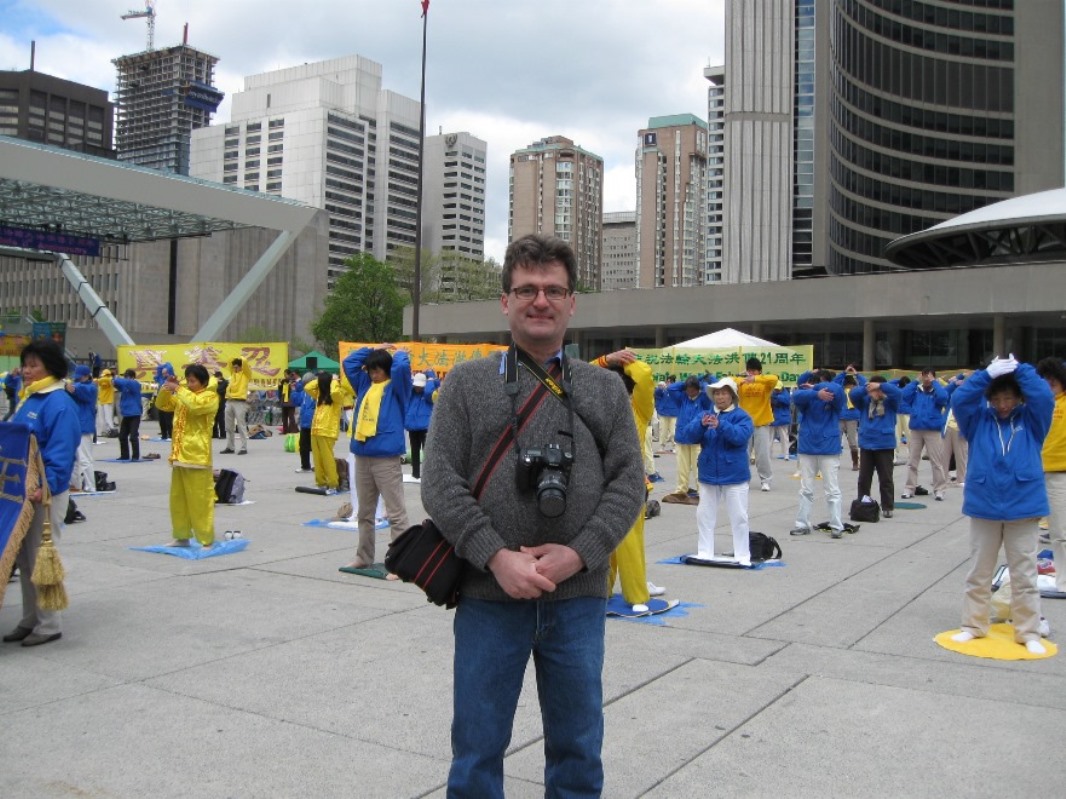 Jimmy Pizolinas是一位白人计算机技工,很喜欢中国文化,二零一一年去多伦多天梯书店买神韵晚会门票,就跟学员学法轮功了。