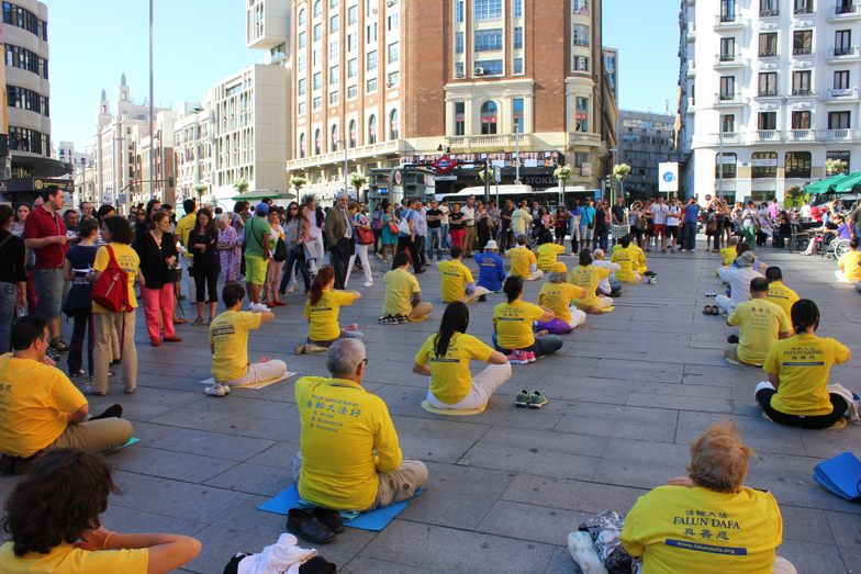 一位来马德里旅游的上海人看到法轮功学员集体炼功的场面,非常激动地说,没想到在国外这么多人在炼法轮功。他说他知道法轮功真相,他的外婆和阿姨都修炼法轮功,他的外婆现在已经九十三岁高龄,身体很健康。他拍摄了法轮功学员集体炼功和民众征签反迫害的场面,表示带回去给他的外婆和亲朋好友们看。