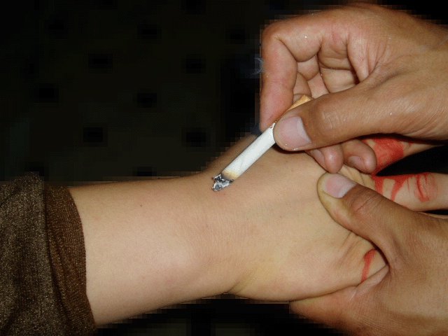十一、用针扎手指肚、烟头烧、用锤砸脚趾头。
