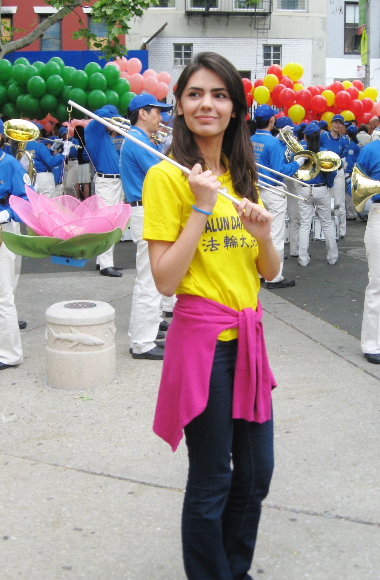 阳光女孩加扎娜(Ghazala)与父亲费瑞波兹(Fariborz Tavanaei)从伊朗迪拜(Dubai)搭乘十四小时飞机来到纽约参加法轮功洪传庆祝活动,他们非常自豪能成其为一部份。