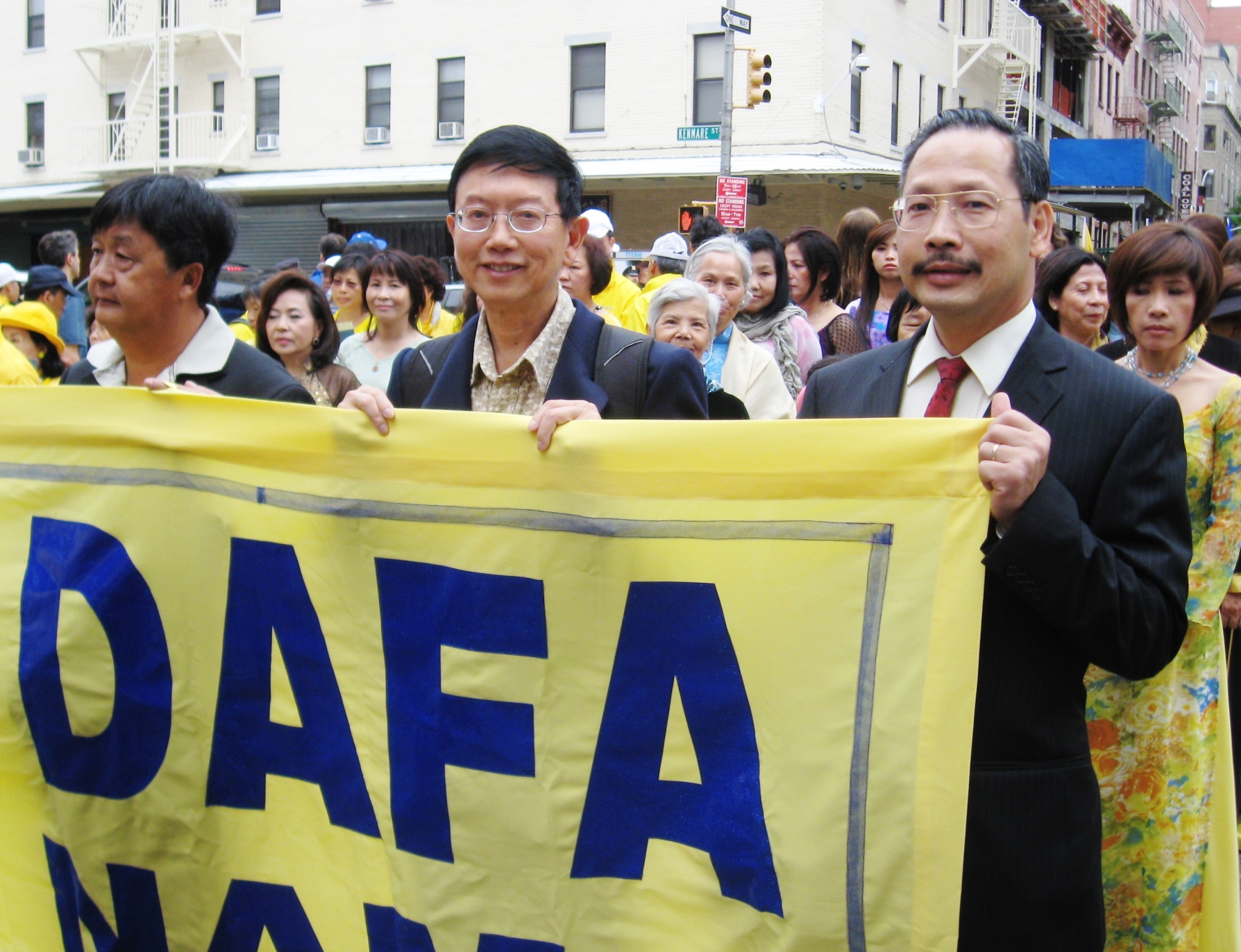 ![]() 圣地亚哥建筑师凯莉与男友雷在观看曼哈顿法轮功大游行 |