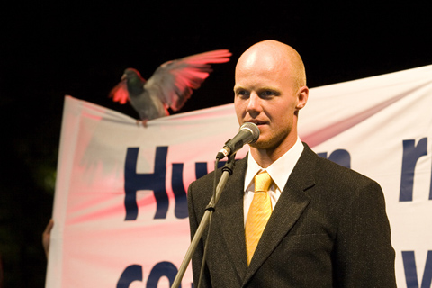 二零零七年八月九日,雅典宪法广场,马汀斯在人权圣火点火仪式上