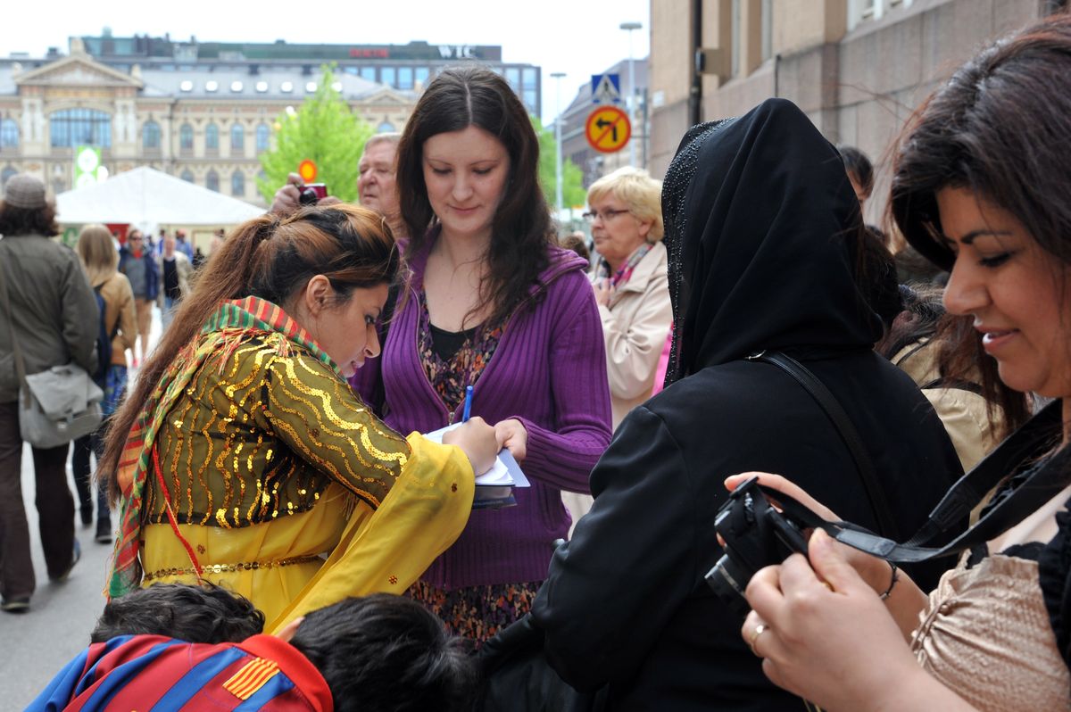 活动期间,学员简单介绍了法轮功和征集反迫害签名的缘由,很多人便毫不迟疑地签名。一位年轻的芬兰小姑娘,拿了资料后说要先了解了解,过了一两个小时后,她又转回来表示要签名。还有人告诉法轮功学员说:“这是对每个人都非常重要的事情。”
