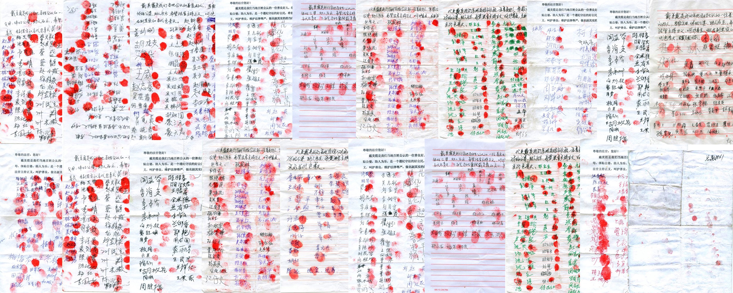 一千八百六十一名民众签名按手印声援营救戴美霞