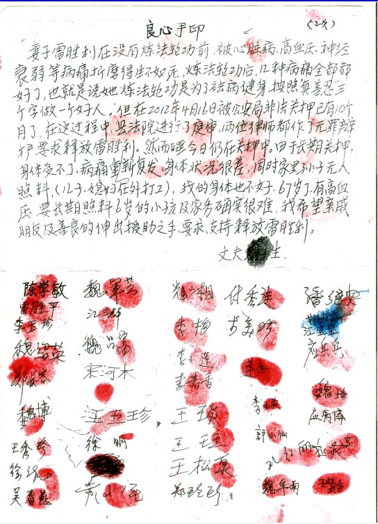 第一批四百名民众签名,四月中旬有一千零四十位湖北省通城县民众签名、按手印,声援被非法关押的雷胜利。这里是收到的第三批民众签名。