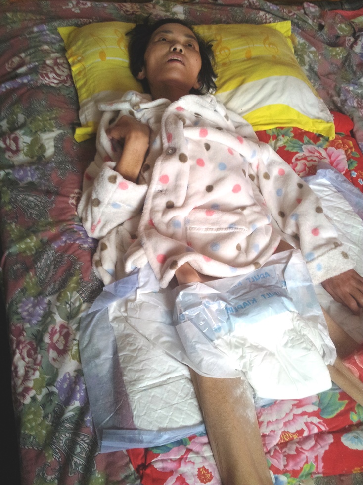 二零一二年六月份,照顾她的母亲也去世了。此时的春玲已经基本能照顾自己了。她住在纱厂一幢陈旧的楼房的二楼,面积也就五十平米左右。她有时还能扶着楼梯一步一挪地倒退着下楼。她的状况越来越好。