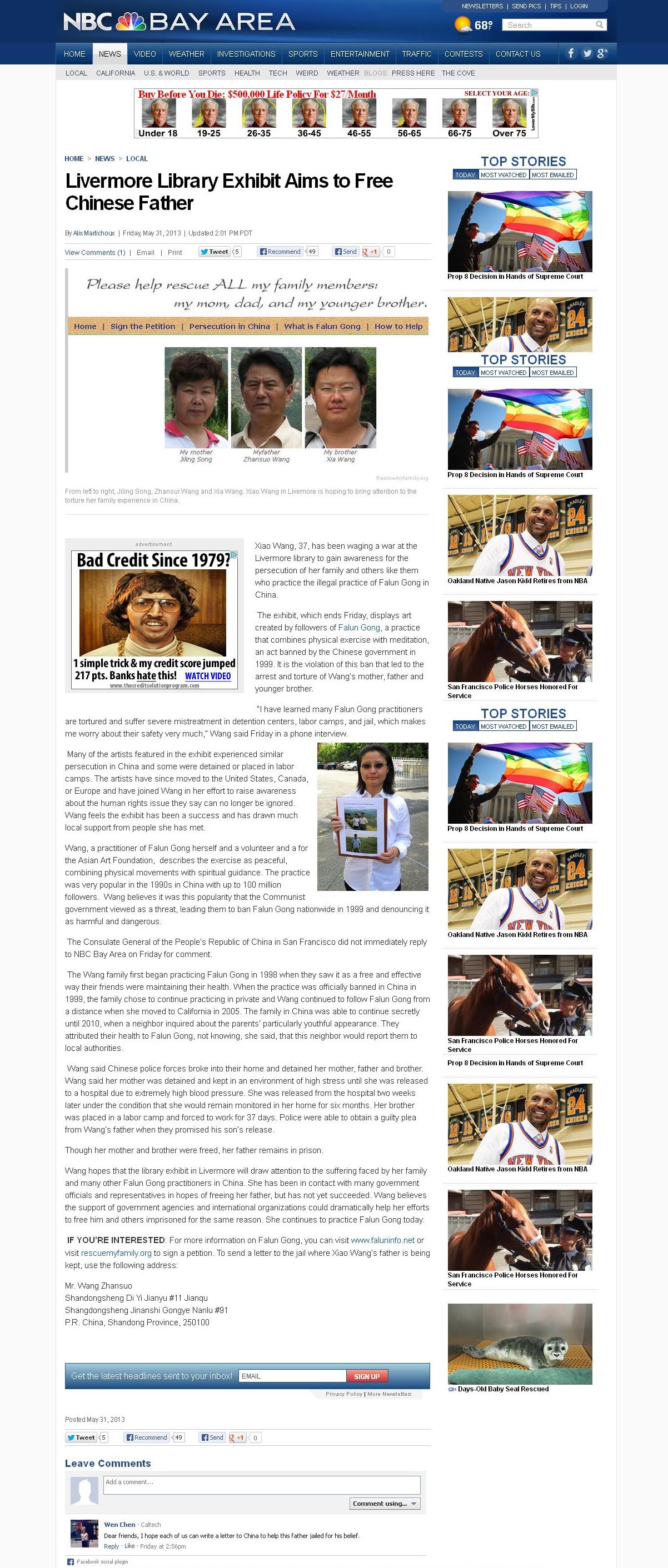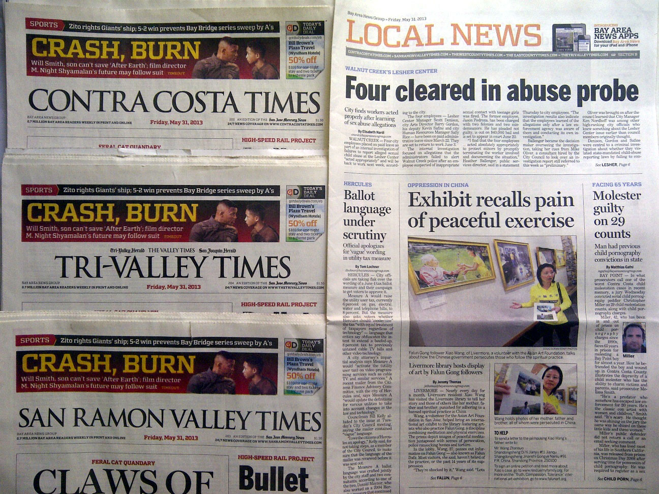 Bay Area News Group的多家报纸对真善忍美展和中国法轮功学员遭受的迫害进行了报道