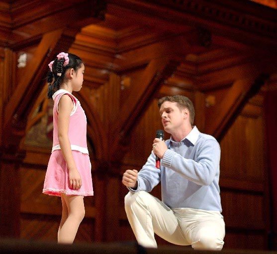'二零零五年九月十八日,德鲁在哈佛大学圣德思剧院营救法轮功孤儿慈善义演上演唱《孩子,让我带你回家》(飞越风雨的和平鸽),令很多观众感动落泪。'